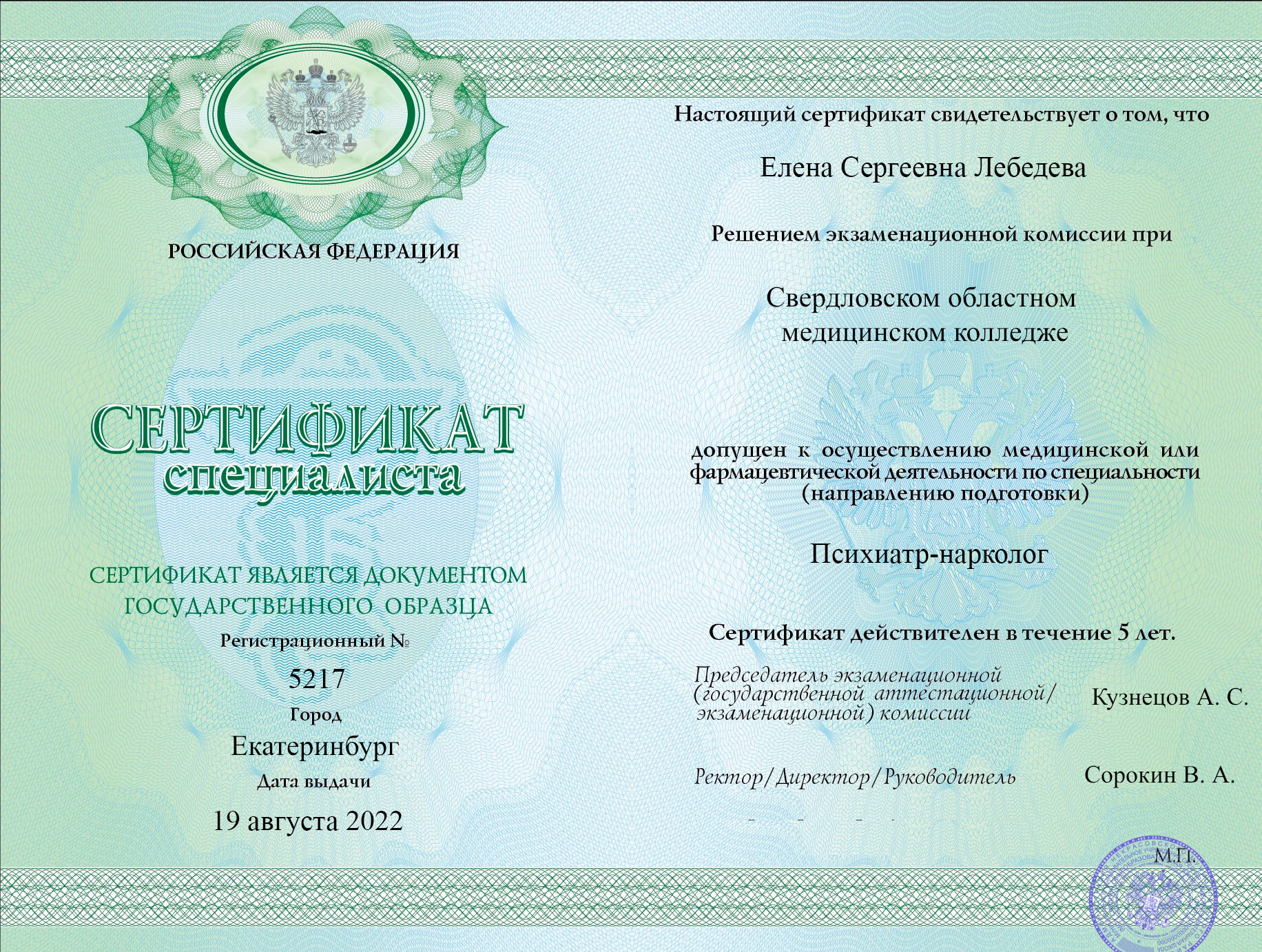 Елена Сергеевна Лебедева врач нарколог клиники доктора Стукаловой в Новониколаевском